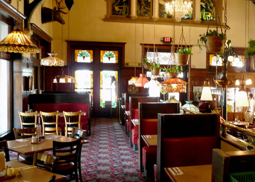 Here's another fun place to eat at Clara's. This is the "platform" and is on the main floor. There are cozy booths here to sit in.