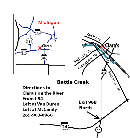Back to Clara's Home Page Back to Clara's On The River Back to Clara's Lansing Station