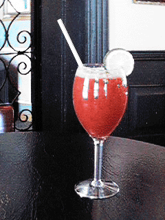 GARNISH WITH A LIME WHEEL AND A STRAW